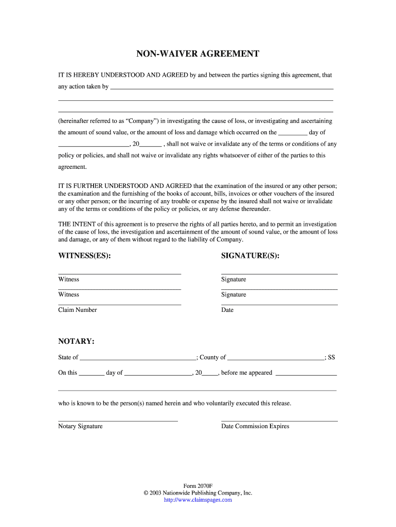 Get the free Non-Waiver Agreement