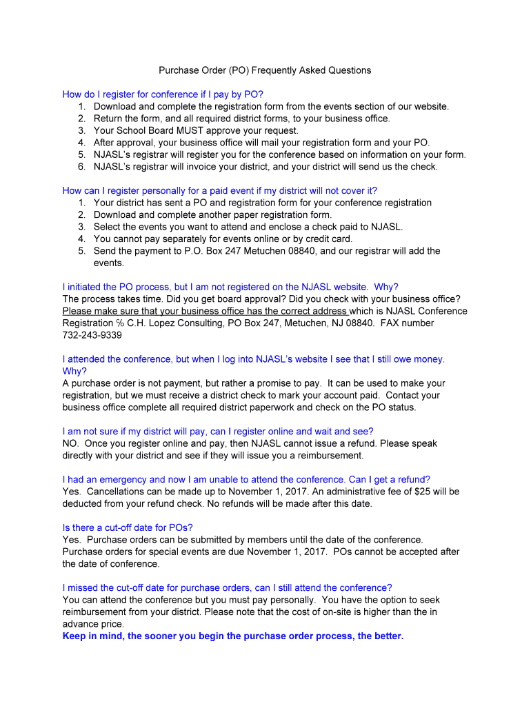Get the free Purchase Order (PO) Frequently Asked Questions How do I ...