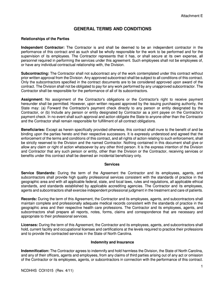Attachment GENERAL TERMS AND CONDITIONS