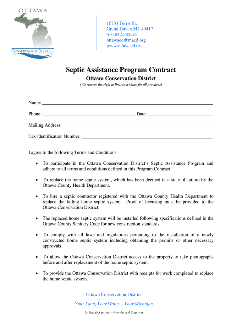16731 Ferris St. Grand Haven MI 49417 616.842.5852×5 Ottawa Mac.org www.ottawacd.orgSeptic Assistance Program Contract Ottawa Conservation District (We reserve the right to limit cost share for all