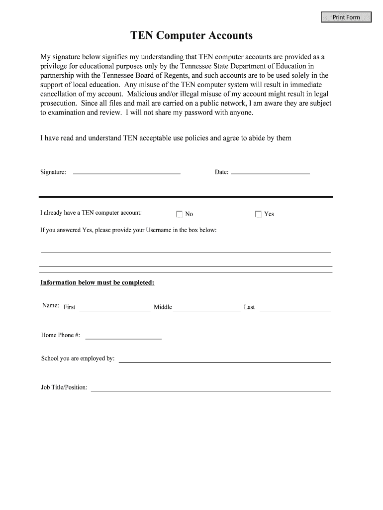 Get the free TEN Computer Account Agreement