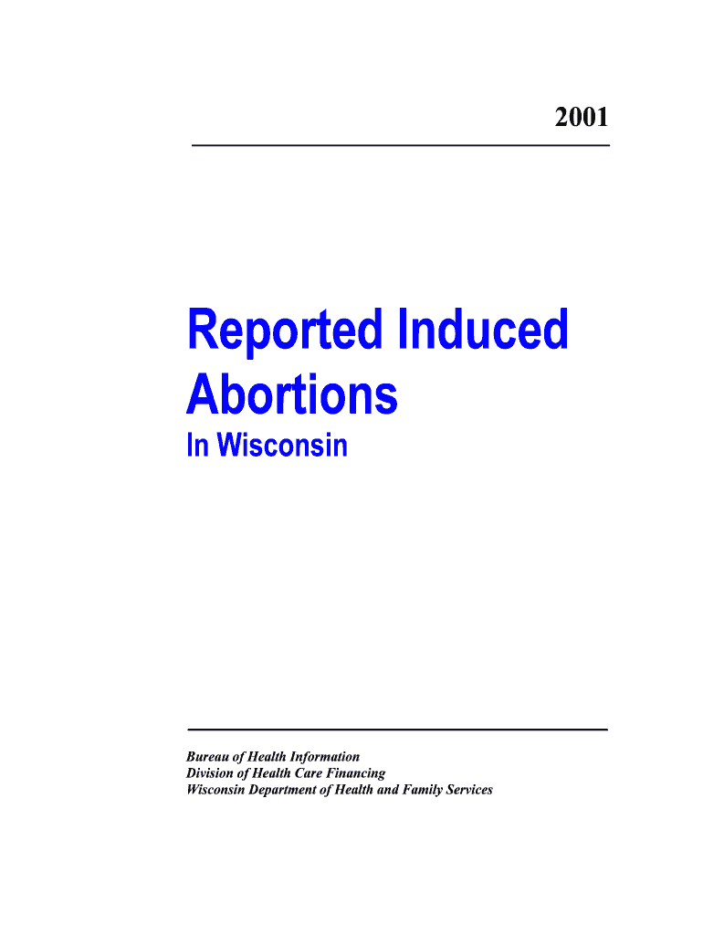2001Reported Induced Abortions In WisconsinBureau of Health Information Division of Health Care Financing Wisconsin Department of Health and Family Services Reported Induced Abortions in Wisconsin