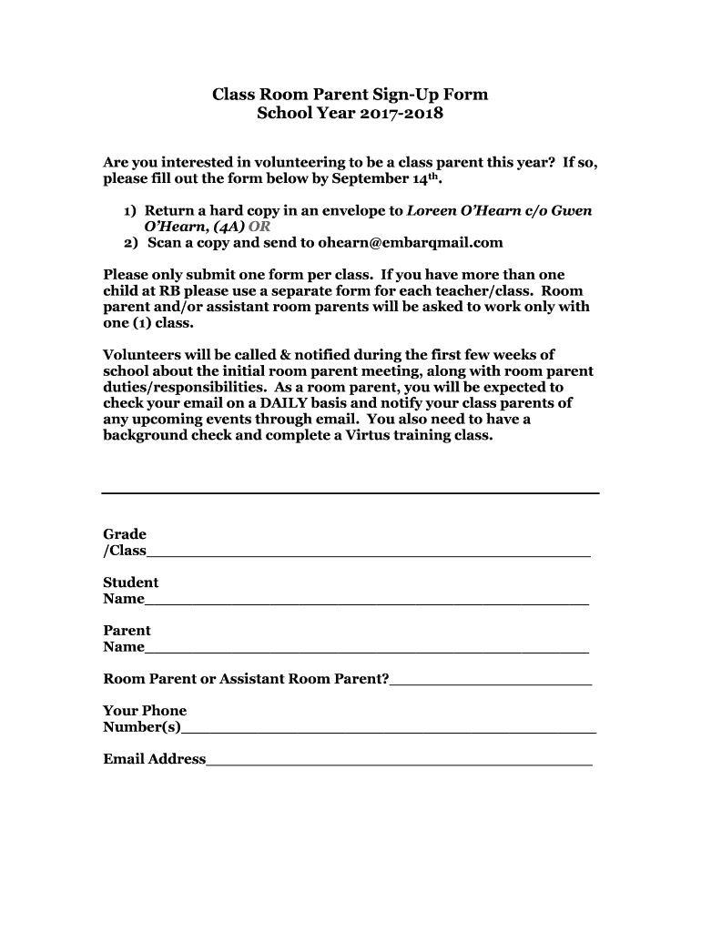 Get the free Class Room Parent Sign-Up Form School Year 2017-2018