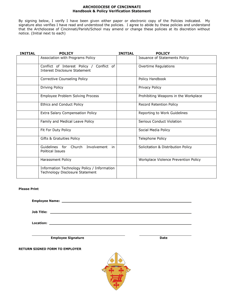 Get the free Verification Statement for All Policies - Archdiocese of Cincinnati - catholiccincin...