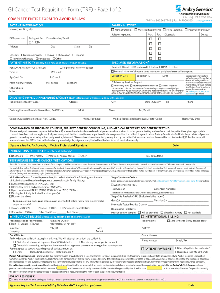 GI Cancer Test Requisition Form (TRY) Page 1 of 2 Also Video, CA 92656 USA Toll Free: 866.262.7943 Fax: 949.900.5501 androgen. Complete ENTIRE FORM TO AVOID DELAYS patient information family historyName