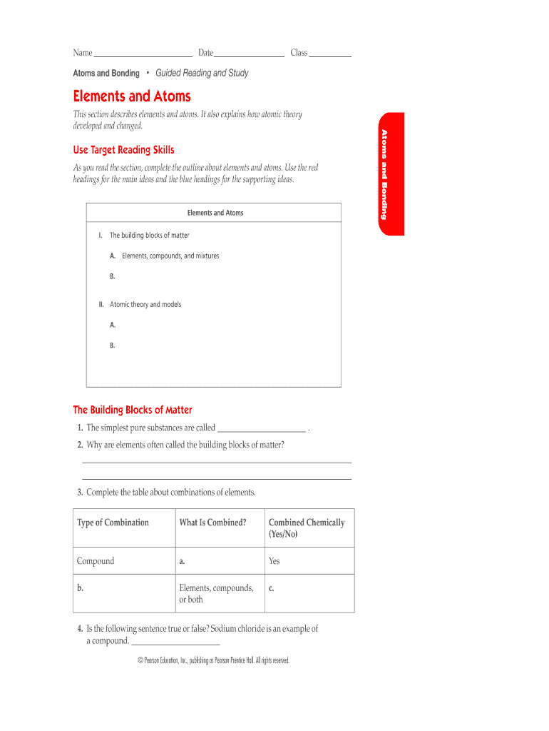 After completing the Atoms and Bonding Guided Reading and Study form, review your responses, and save or download the file. You may also submit it electronically through pdfFiller.