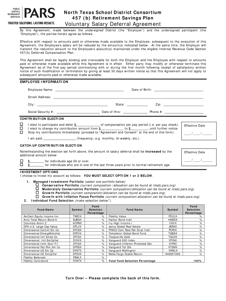 457 (b) Retirement Savings Involuntary Salary Deferral Agreement this Agreement, made between the undersigned District (the Employer) and the undersigned participant