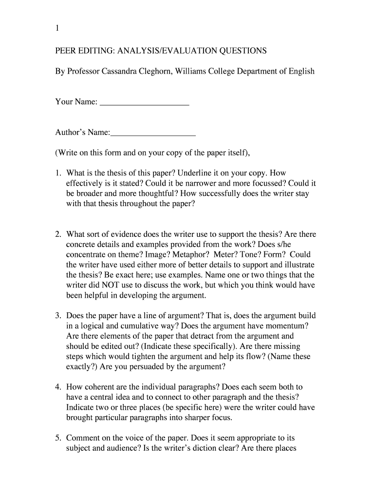 Get the free Peer Editing Analysis Form