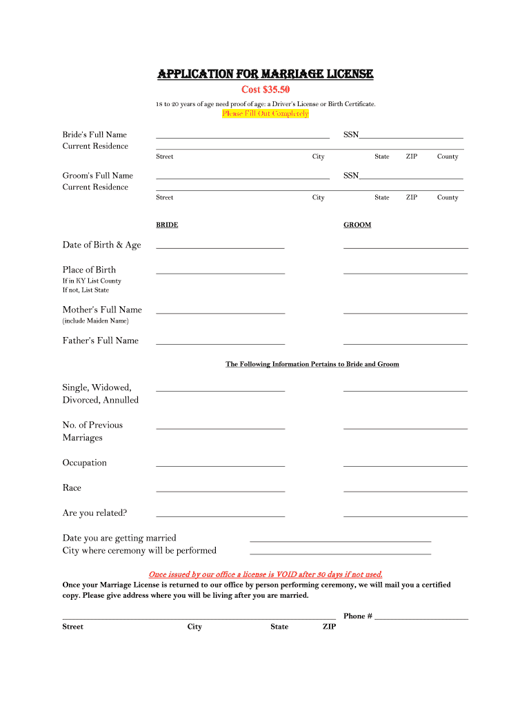 Get the free Marriage License Application