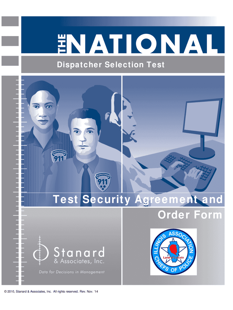 Dispatcher Selection The Testiest Security Agreement and Order FormDispatcher Selection Test 2010, Standard & Associates, Inc. All rights reserved. Rev. Nov. 14How to Complete Your Order Form Following