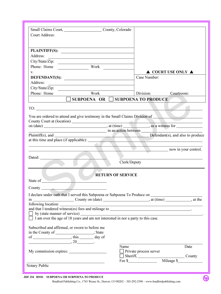 Get the free Colorado Small Claims Court Subpoena