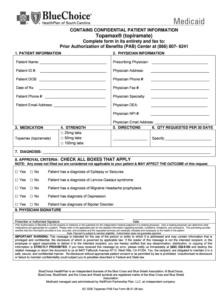 The Topamax prior authorization form consists of several key sections designed to capture essential patient and treatment information. Among these sections are: