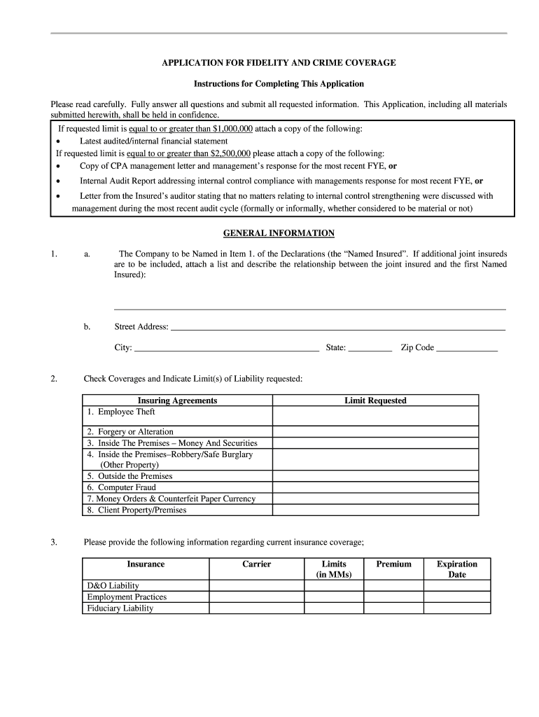 Get the free Fidelity and Crime Coverage Application