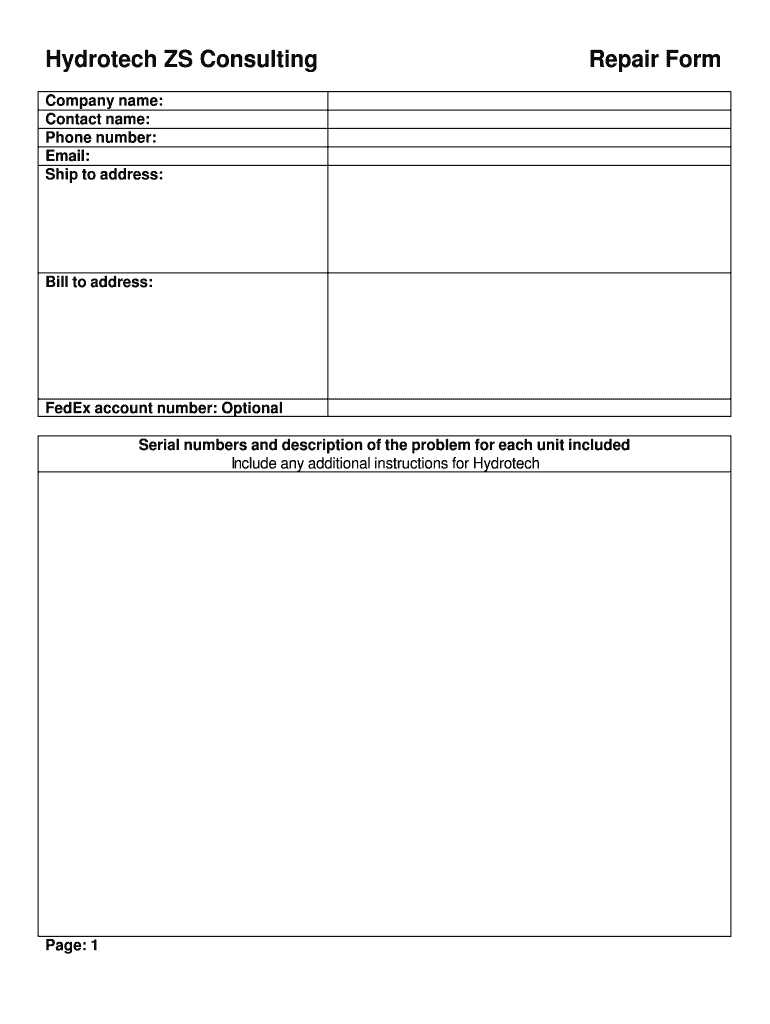 Edit your hydrotech zs consulting repair form online