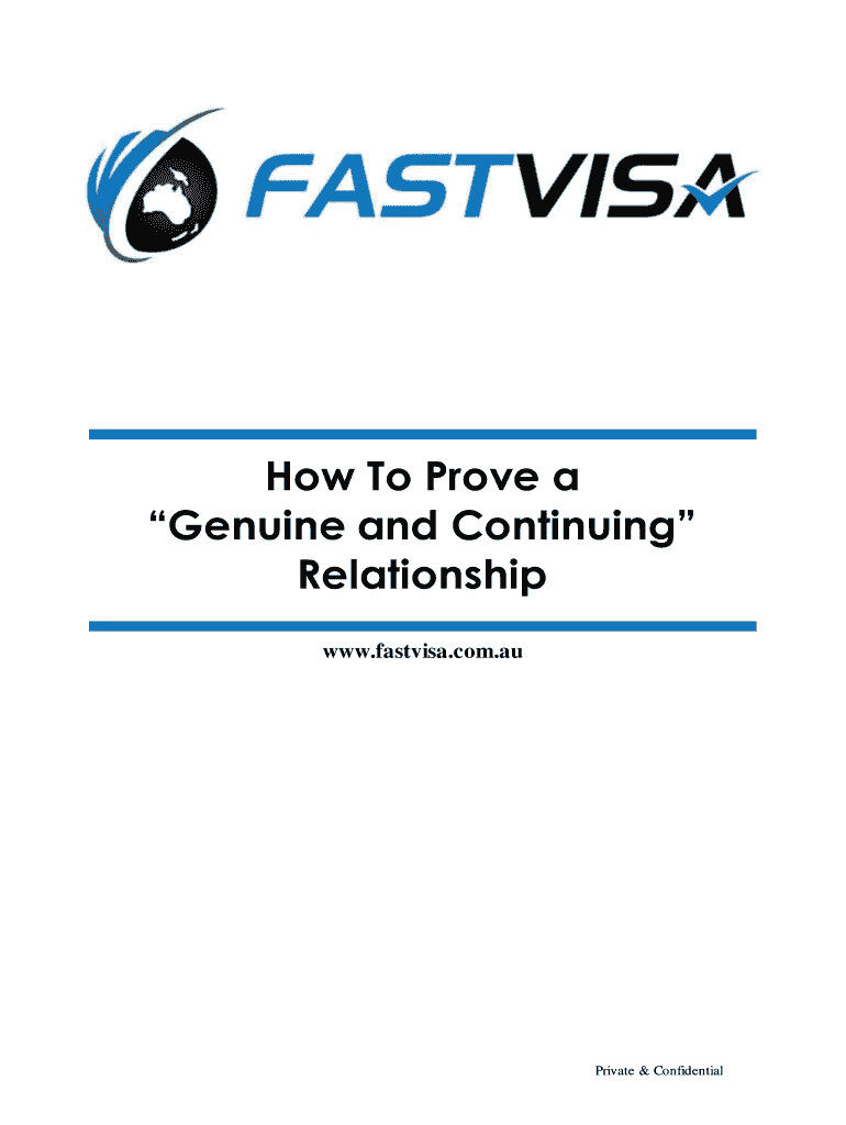 How To Prove a Genuine and Continuing Relationship www.fastvisa.com.auPrivate & Confidential TO PROVE A GENUINE AND CONTINUING RELATIONSHIP Marriage Certificate or Relationship Registration Certificate