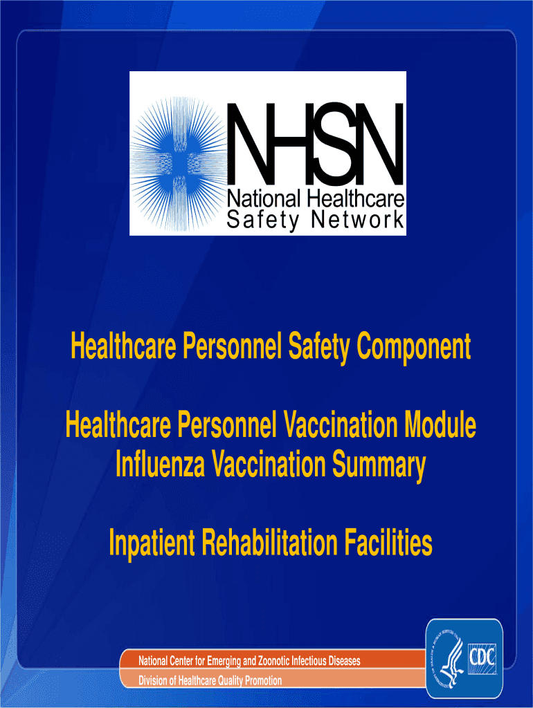 Healthcare Personnel Safety ComponentHealthcare Personnel Vaccination ModuleInfluenza Vaccination SummaryInpatient Rehabilitation FacilitiesNational Center for Emerging and Zoonotic Infectious Diseases