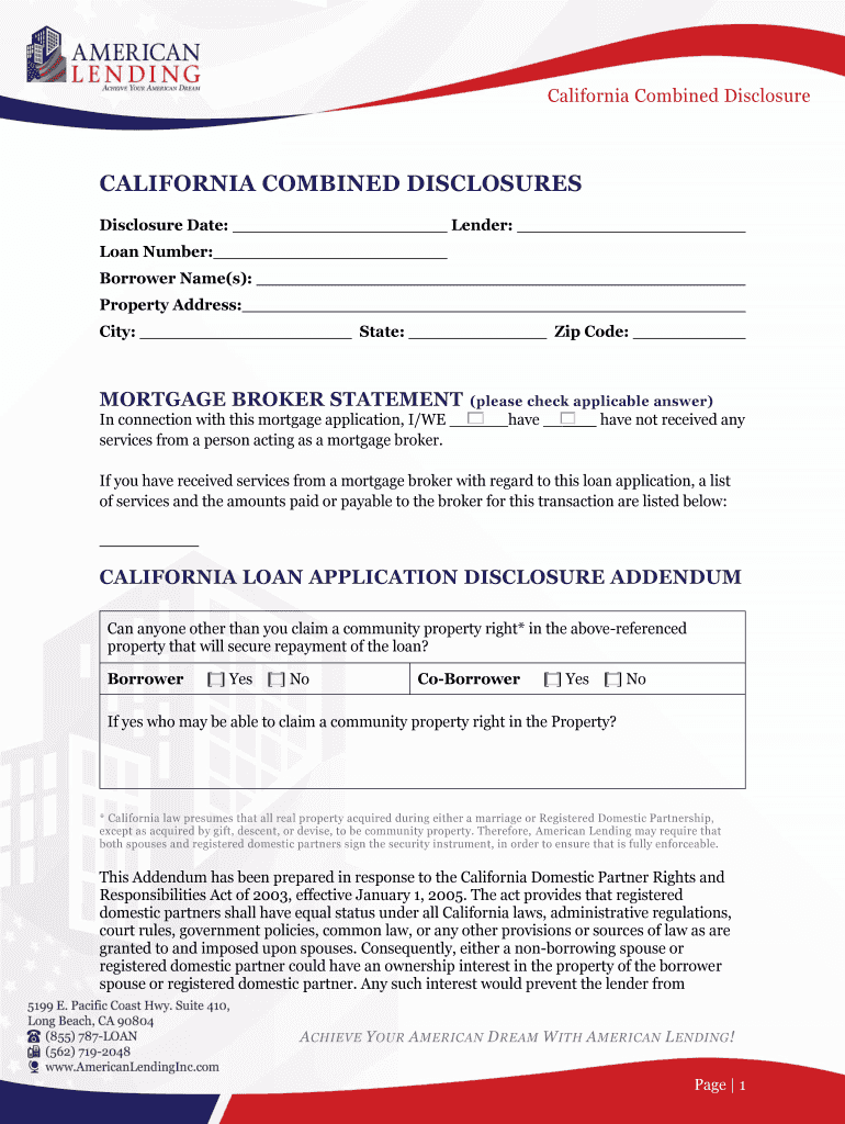 Get the free California Disclosure - American Lending