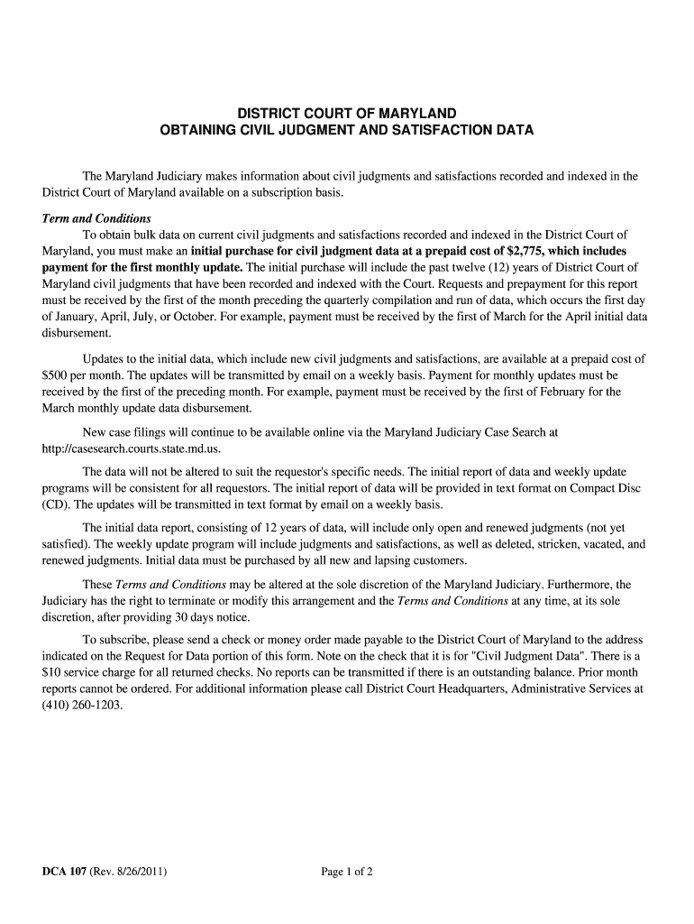 Get the free The Maryland Judiciary makes information about civil judgments and satisfactions rec...
