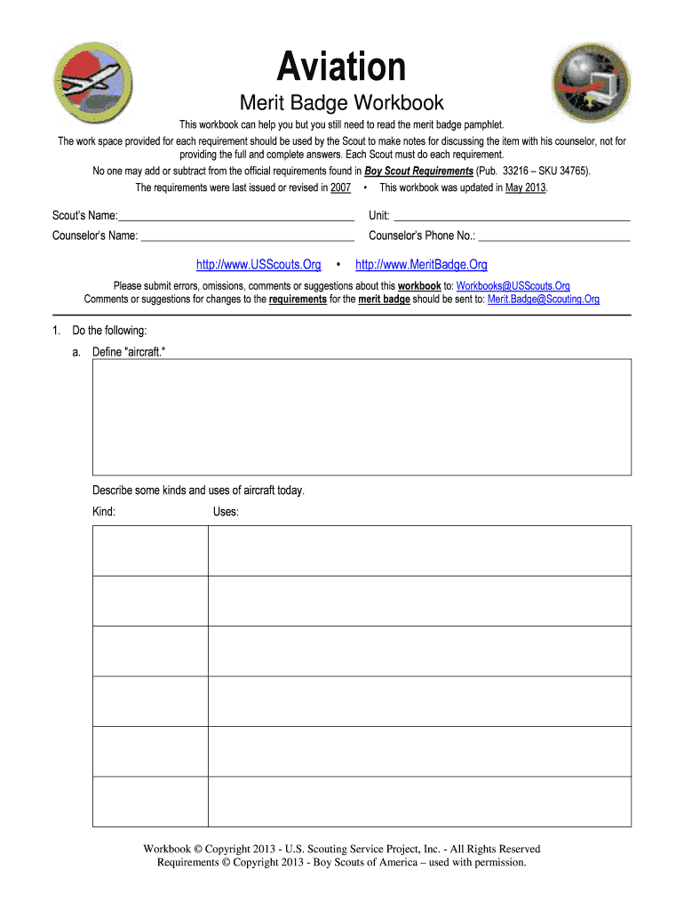 Get the free Aviation Merit Badge Workbook
