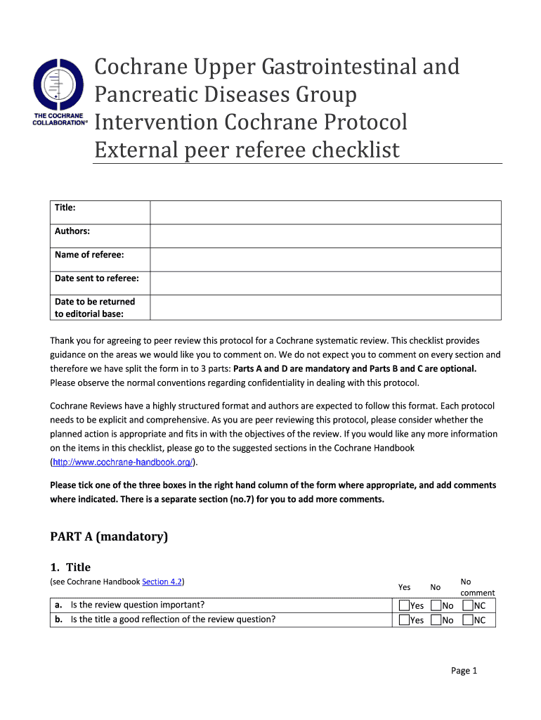 Get the free Cochrane Protocol Peer Review Checklist