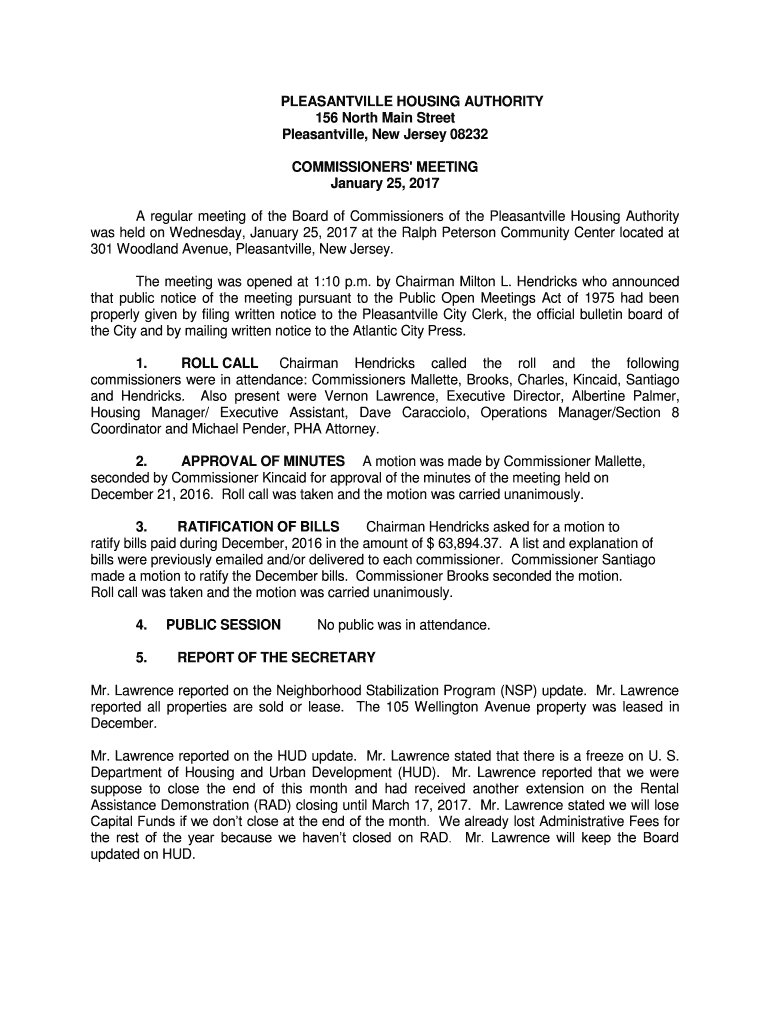 A regular meeting of the Board of Commissioners of the Pleasantville