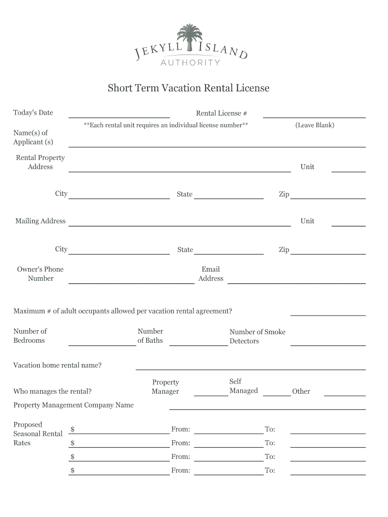 Vacation rental application is a form used by individuals or companies to apply for permission to rent out their property for short term stays.