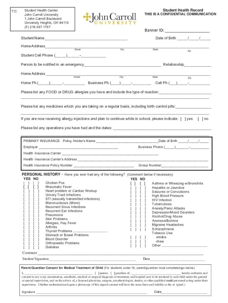 Who Needs to Fill Out the John Carroll University Student Health Form?