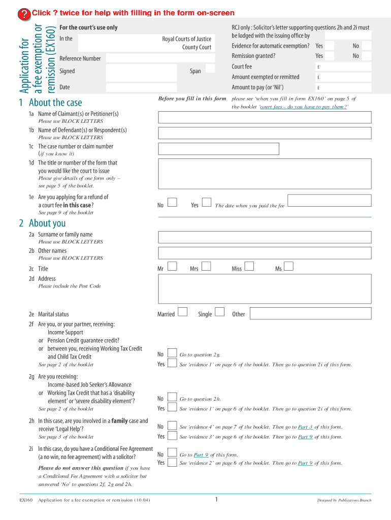 The UK Court Fee Exemption Application is a legal document used by individuals in the United Kingdom to apply for exemption or remission of court fees.