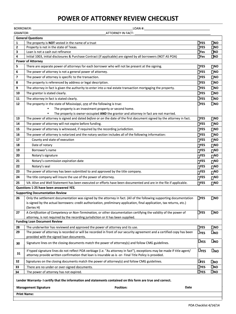 Get the free Power of Attorney Review Checklist