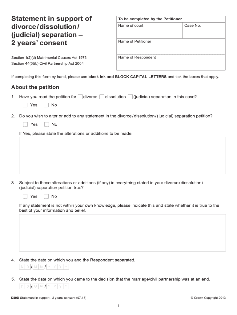 Accessing a Sample or Example of a Completed UK Divorce/Dissolution Statement in Support