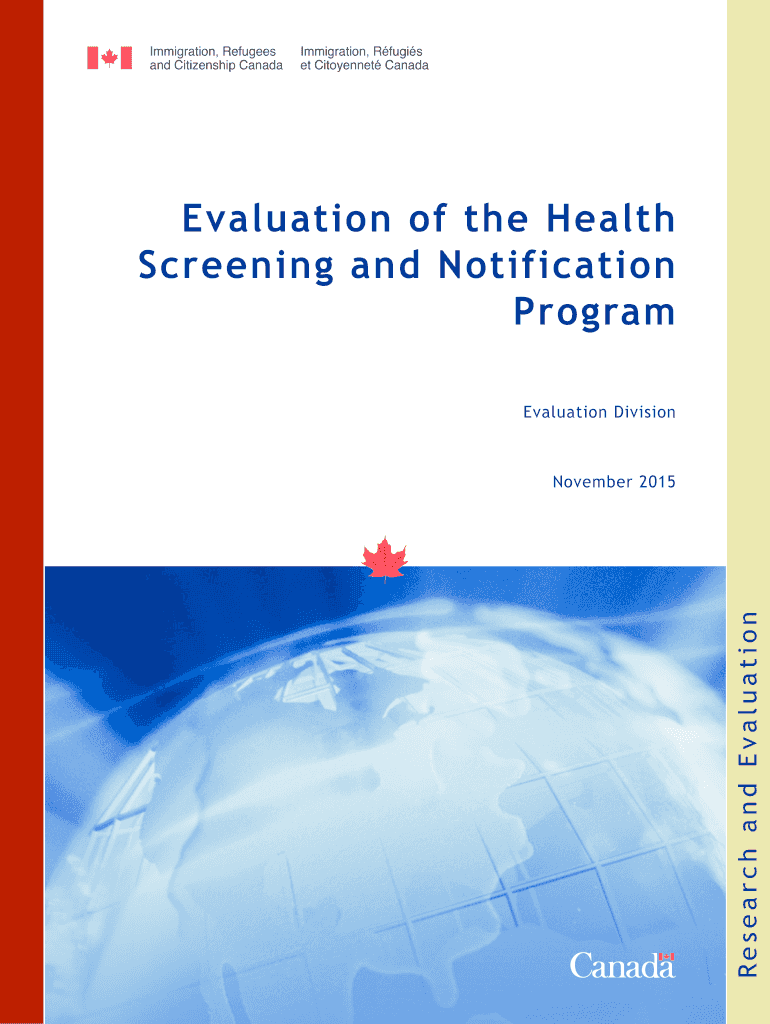 Evaluation of the Health Screening and Notification Program Evaluation Division Re s e an r c h an n d E v an l u a t i on November 2015Ci4149/2016EPDF 9780660047676 Refs. No.: E82013Table of contents