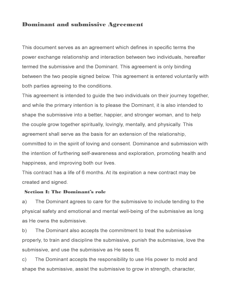 Dominant and submissive Agreements document serves as an agreement which defines in specific terms the