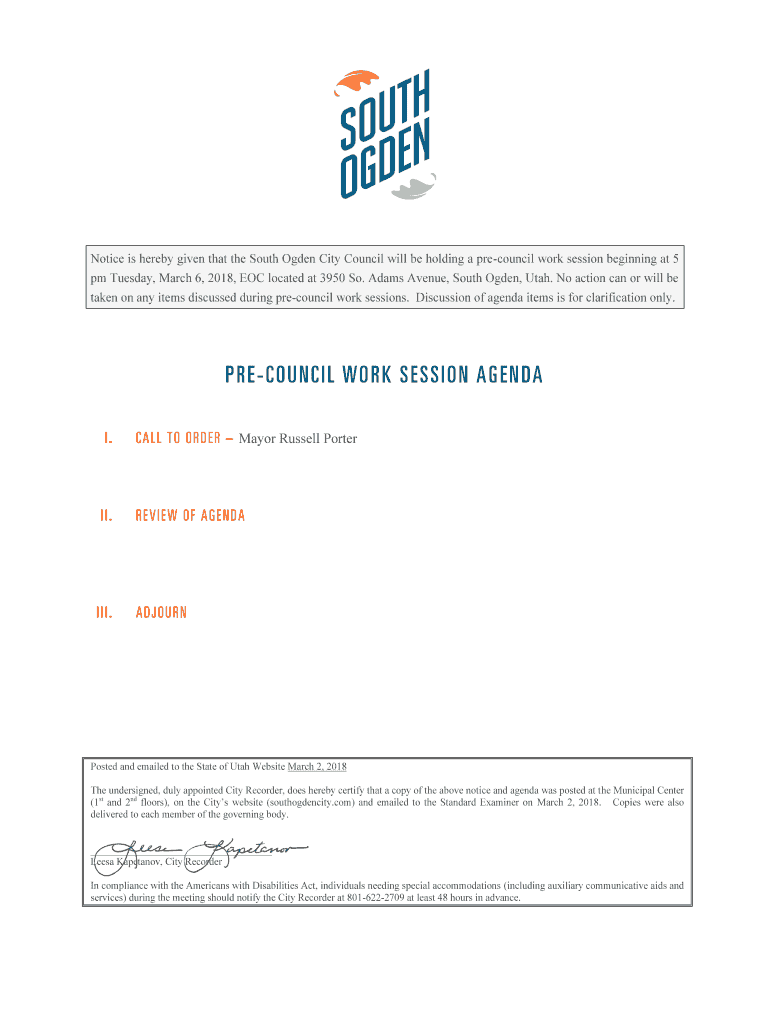 pm Tuesday, March 6, 2018, EOC located at 3950 So. Adams Avenue, South Ogden, Utah. No