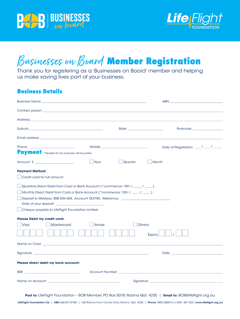 Get the free Businesses on Board Member Registration - LifeFlight