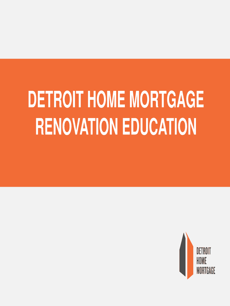 DETROIT HOME MORTGAGE RENOVATION EDUCATIONCOURSE OUTLINE Ways to Renovate Using Detroit Home Mortgage Things to Consider Before You Begin Renovating Roles and Responsibilities RenovationRelated Documents