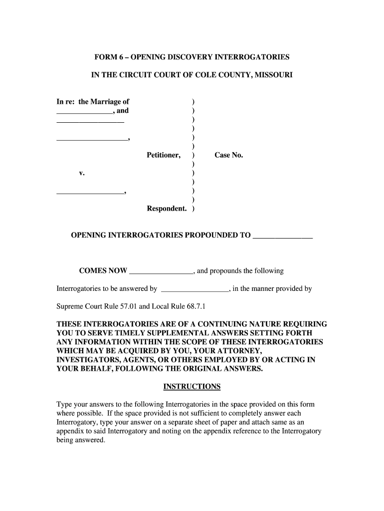 Get the free Form 6 – Opening Discovery Interrogatories
