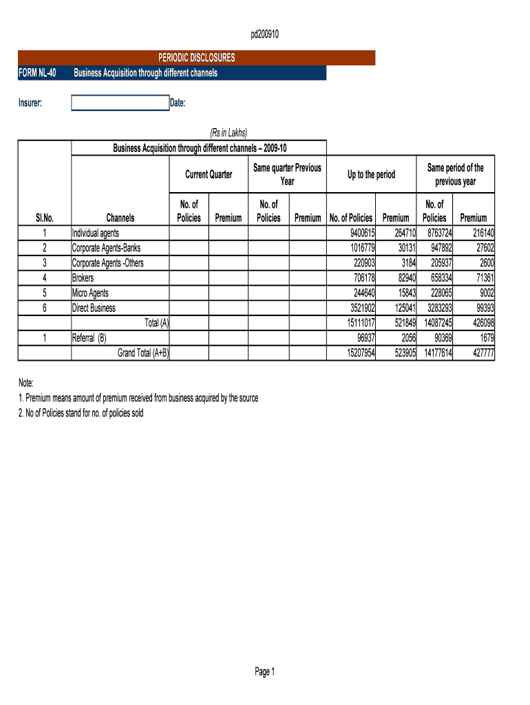 Get the free PERIODIC DISCLOSURES FORM NL-40 Business Acquisition ... - uiic co