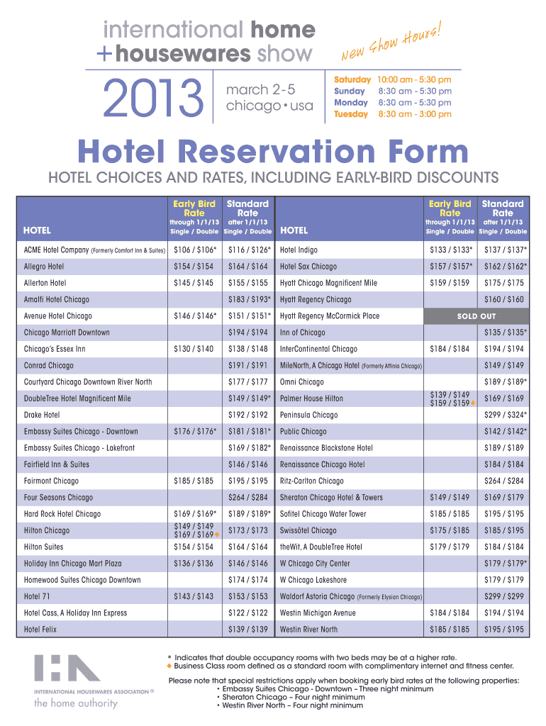 The Hotel Reservation Form serves as a crucial tool for booking accommodations for various events, including conferences and trade shows. This form allows attendees and exhibitors to efficiently secure their lodging through the Housewares Official Housing Partner. By utilizing the hotel reservation form, users can streamline their booking process and ensure they have a place to stay during their event.