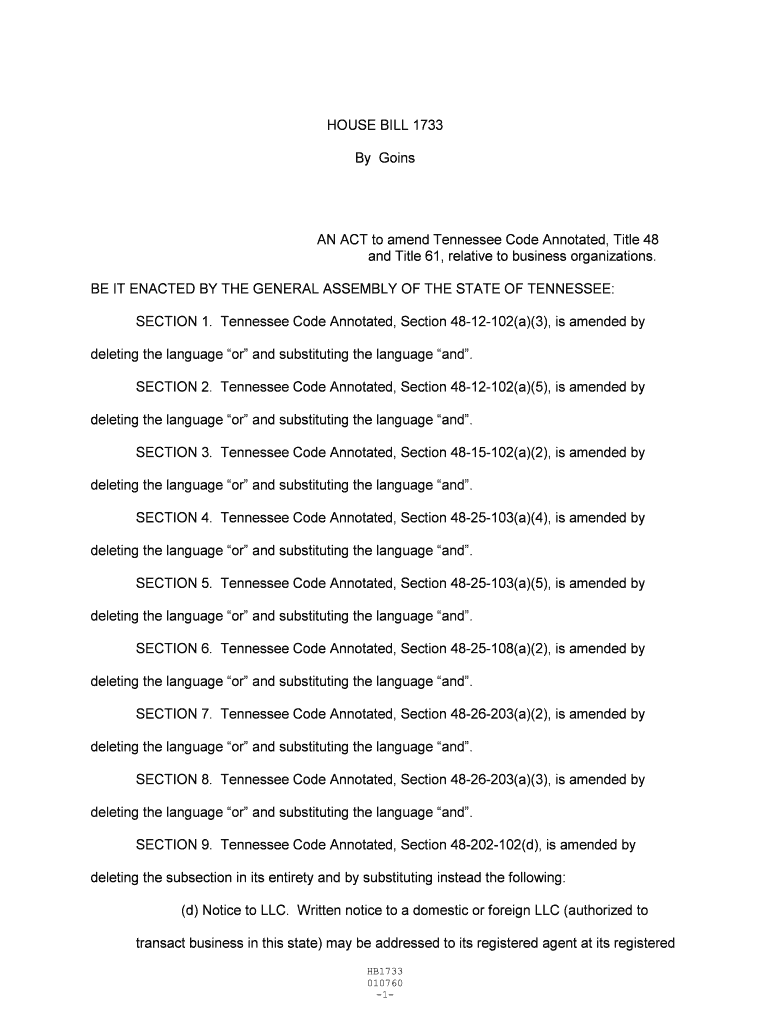Get the free HOUSE BILL 1733 By Goins AN ACT to amend Tennessee Code ... - capitol tn