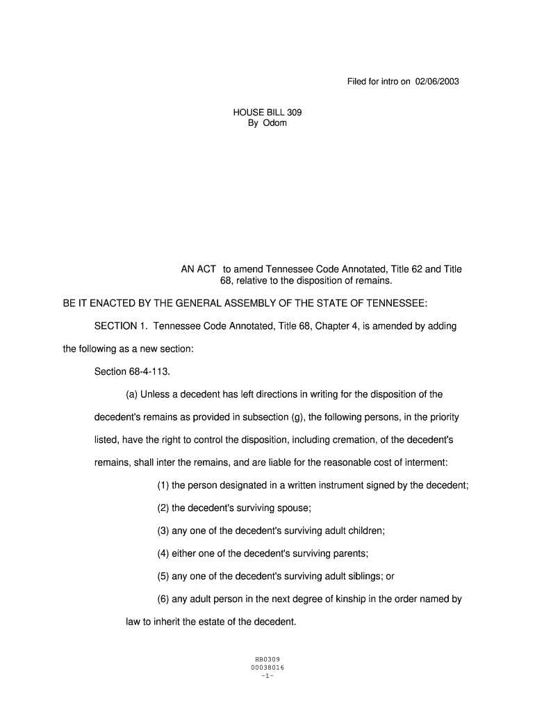Filed for intro on 02/06/2003HOUSE BILL 309