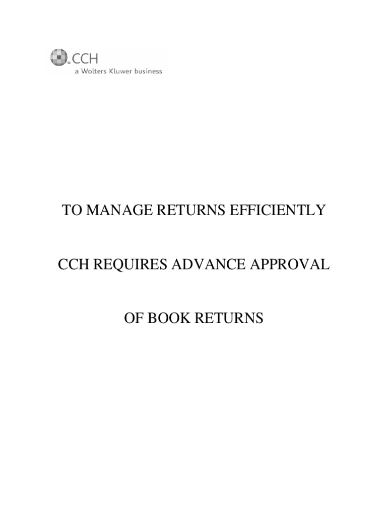 The CCH Book Return Permission Request Form is a crucial document for college bookstores seeking to return textbooks to CCH/Aspen. This form serves to authorize the return process, ensuring that all necessary details are communicated effectively between the bookstore and CCH. With the usage of the CCH book return form, bookstores can streamline the process of textbook return authorization.