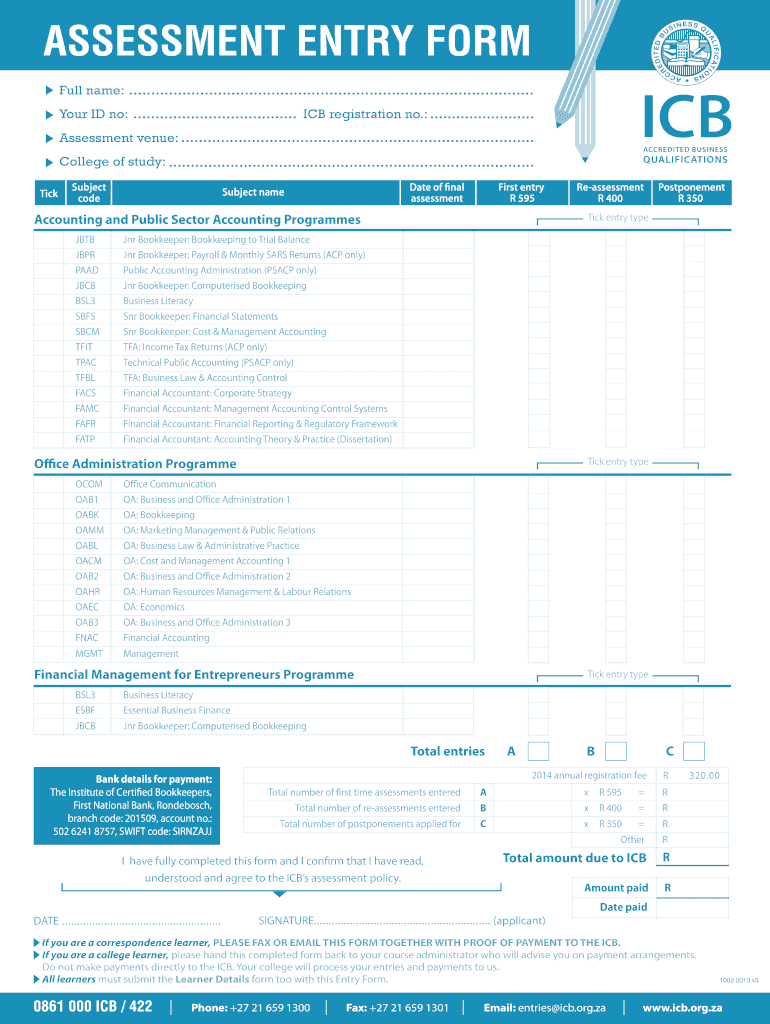 Payment Methods and Fees Associated with the ICB Assessment Entry Form