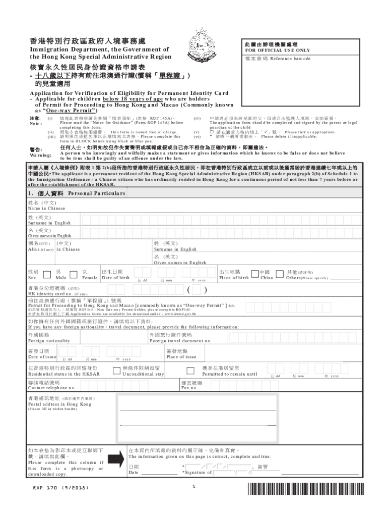 This application is specifically designed for parents or legal guardians who are filing on behalf of their children. Eligibility typically includes children under 18 years old applying for residency in Hong Kong.
