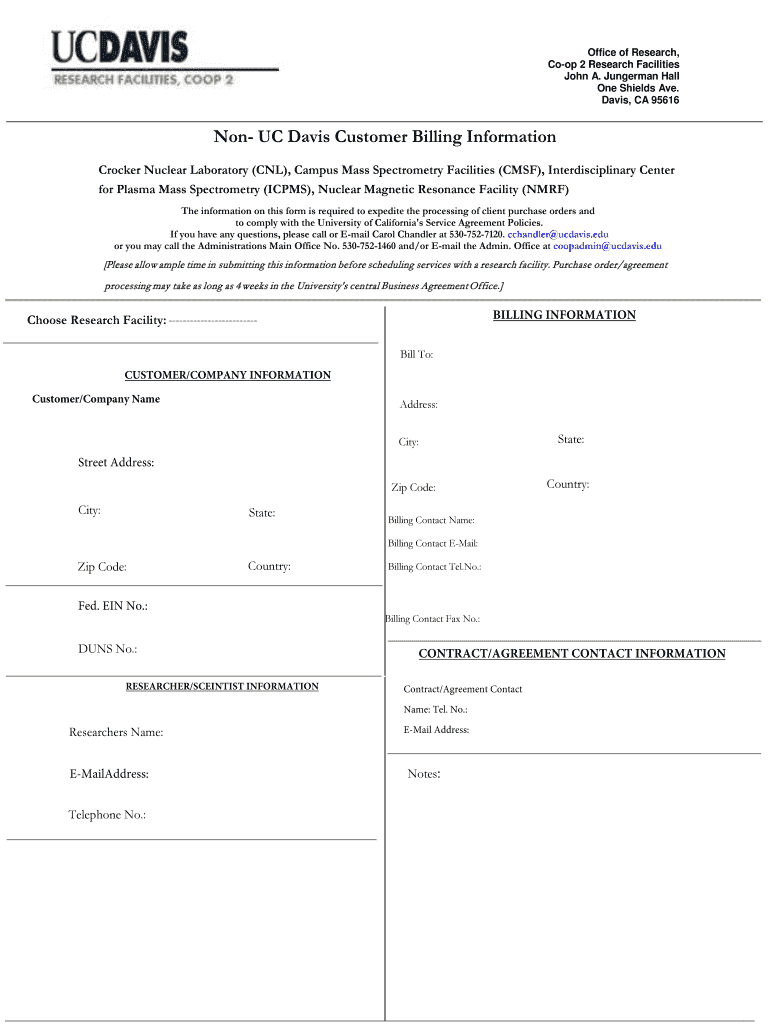 Get the free Non- UC Davis Customer Billing Information - cyclotron crocker ucdavis