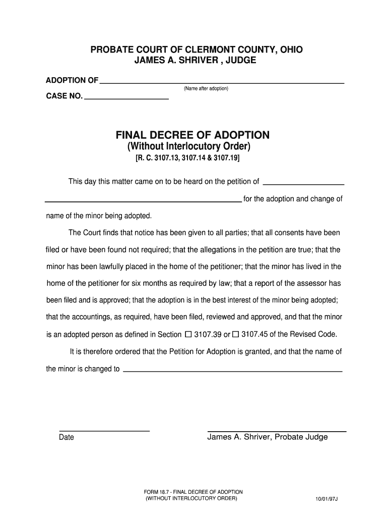 Get the free Without Interlocutory Order - Probate / Juvenile Court, Clermont ... - probatejuveni...
