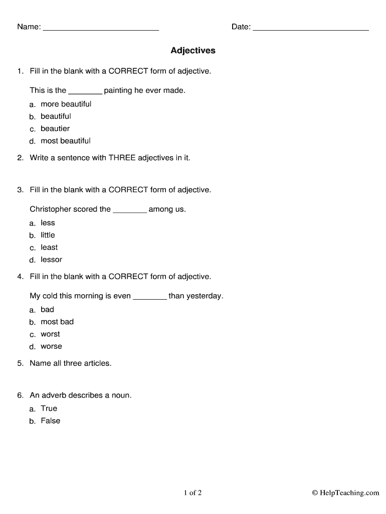 How to fill out the Adjectives Worksheet