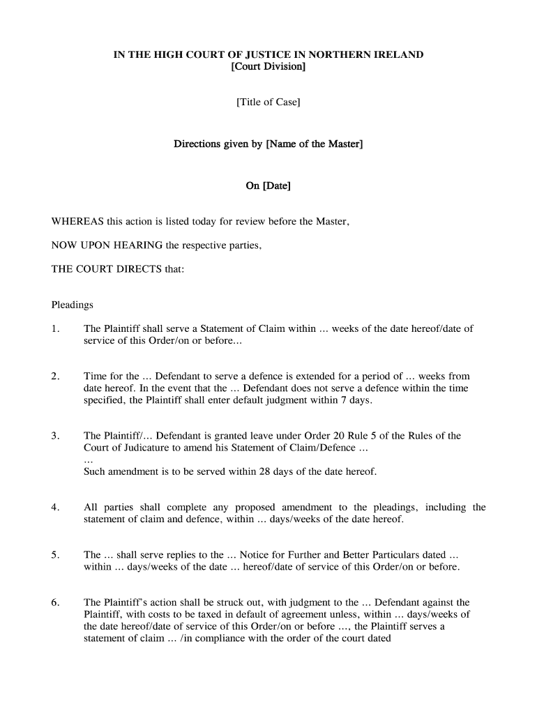 Get the free Court Directions Order