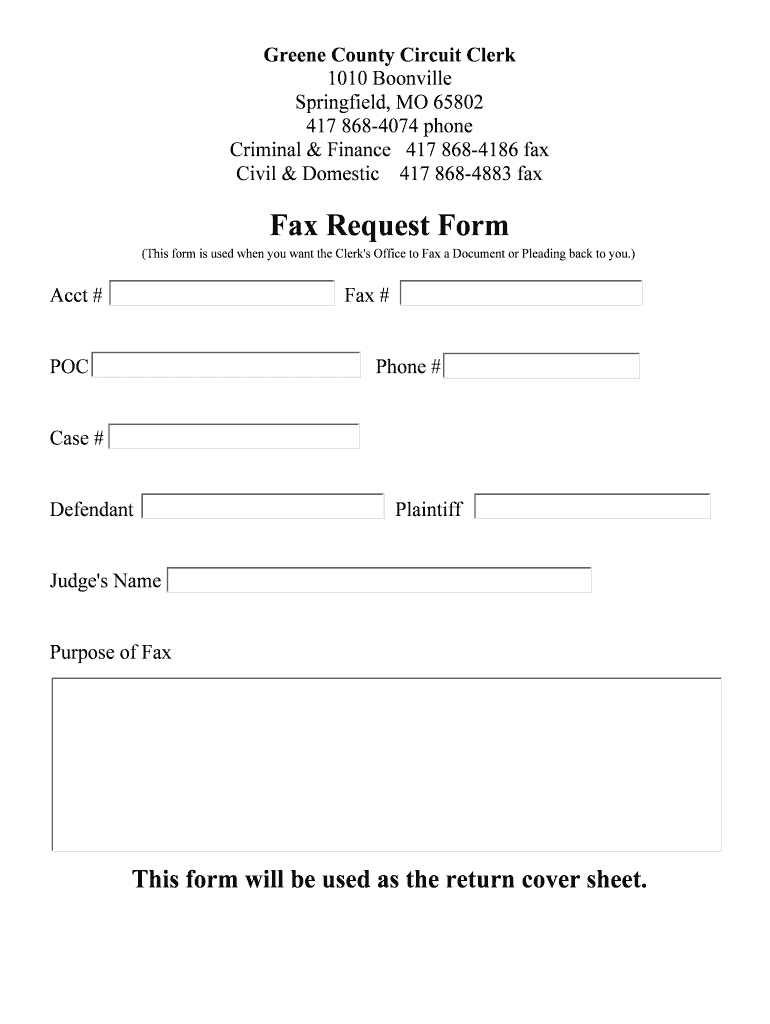 Any resident of Greene County, Missouri, or anyone involved in legal proceedings within the county may use this form to request the faxing of legal documents.