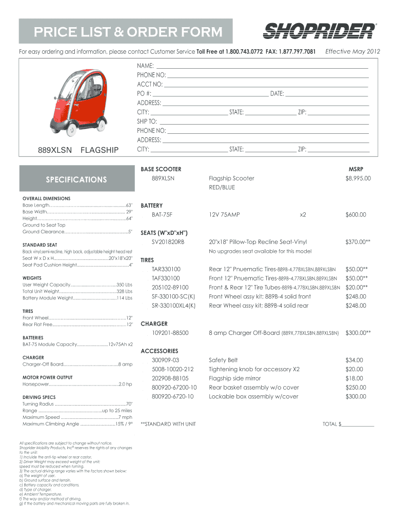 The Price List & Order Form is a crucial document used for procuring mobility products. It serves to provide users with accurate pricing information for various mobility aids, facilitating a smooth ordering process. The form remains relevant for businesses and individuals keen on ordering mobility items, although it is important to note that it has been outdated since May 2012.