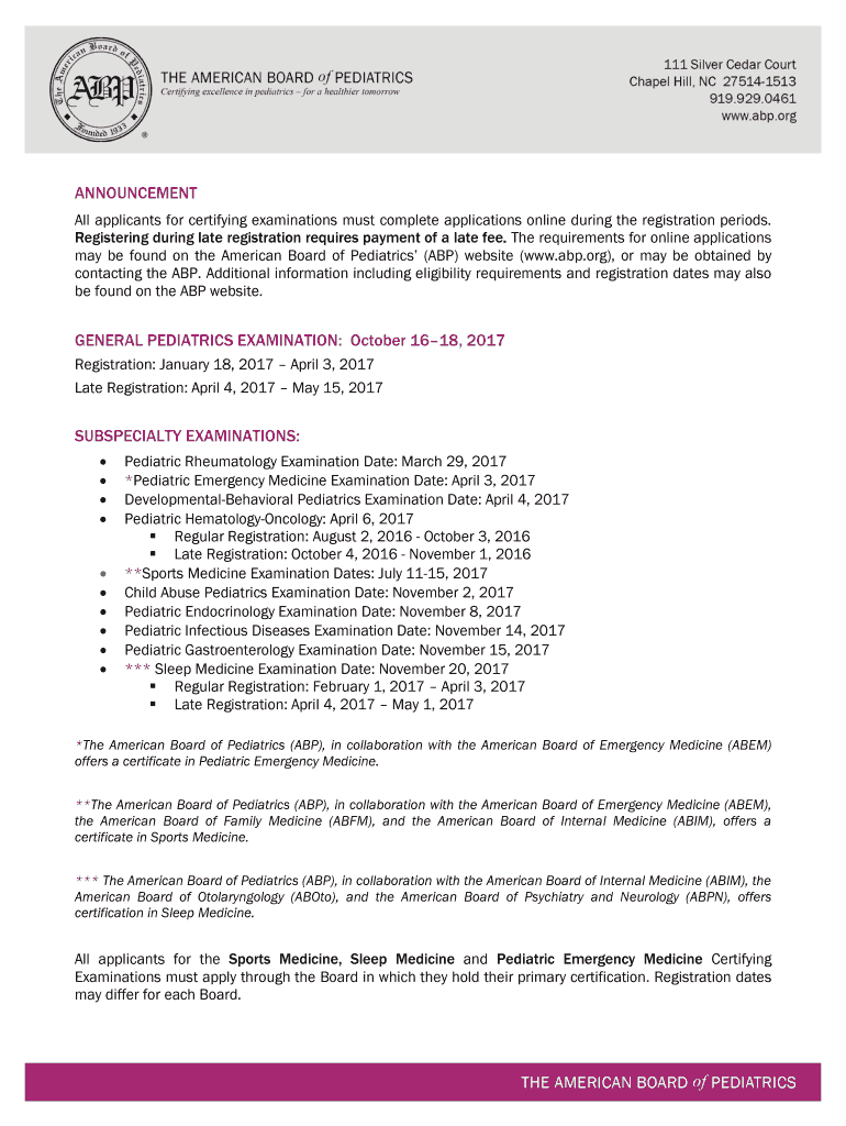 All applicants for certifying examinations must complete applications online during the registration periods.